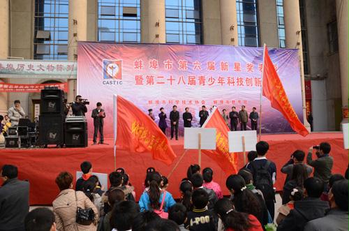 3月10日上午,安徽省蚌埠市科协、市教育局联合主办的蚌埠市第六届青少年科技创新“新星奖”表彰大会暨第二十八届青少年科技创新大赛开幕式在科学宫广场举办。蚌埠市人大副主任鲍子雨、市政协副主席刘沛学、市人大教科文卫工作委员会主任魏孝利、安徽省青少年科技活动中心活动二室主任郑军、市科协主席朱求胜、市教育局副局长程燕、市科技局副局长宫开林、团市委副书记龙晓娣、市教科所所长罗时新、市科技馆副馆长翁成美等参加了开幕仪式。刘沛学宣布大赛开幕。市科协副主席常先波主持开幕仪式。