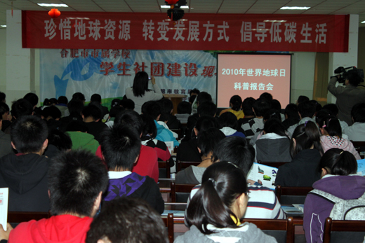 2010年4月22日是第41个“世界地球日”。今年地球日主题是“珍惜地球资源、转变发展方式、倡导低碳生活”。安徽省地质学会、安徽省国土资源厅、安徽省青少年科技活动中心联合于4月22日和23日在合肥市举办了两场地球日科普报告会。4月22日在合肥第一中学举办了题为“低碳生活在我们身边”的科普报告会,合肥一中150余名中学生聆听了报告。4月23日在安徽省工业经济学院举办了题为“珍惜地球资源,倡导低碳生活”的科普报告会,该学院280名大学生聆听了报告。两场报告会均由我省地质专家演讲,报告结合今年地球日主题,从地球日的由来、地球资源和环境现状、我省资源环境现状、低碳生活相关概念、低碳的科学问题、青少年自觉形成低碳生活习惯等方面作了详细论述,报告经过认真准备、精心制作,用通俗的语言、简洁的文字、精美的图片进行充分的展现,受到与会的大中学生的热烈欢迎。学生们认真听、仔细记,纷纷反映听了科普报告,受益匪浅,通过地球日学到了许多课本里学不到的知识,也学到了许多地学知识。尤其是深刻认识到我们只有一个地球,保护地球的重要意义;深刻了解到资源和环境,是人类赖以生存的两个基本条件。从我们做起,从身边小事做起,从现在做起,珍惜每一寸土地,珍惜每一份资源,少开一天车,少用一度电,节省一张纸,节约一滴水,把节约资源体现在日常生活的每个细节中,成为我们的生活习惯,让低碳生活成为未来中国的社会风尚。